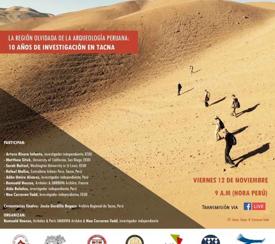 Table ronde Image de couverture Le vendredi 12 novembre 2021 15h00 18h00 La región olvidada de la arqueología peruana: 10 años de investigación en Tacna Ajouter à mon calendrier